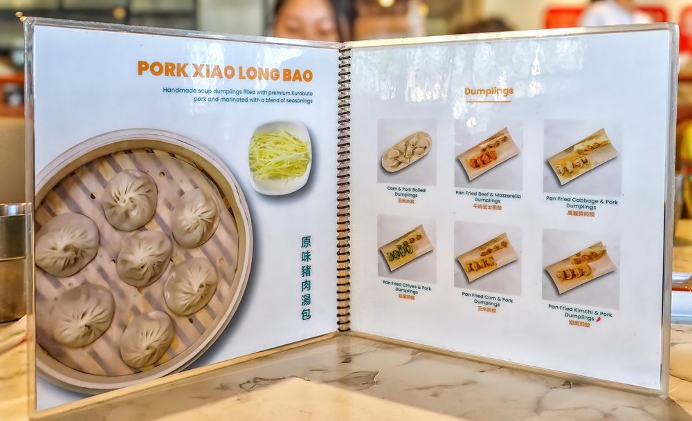 Signature Xiao Long Bao, hand made soup dumplings filled with premium Kurobuta pork marinated with a blend of seasonings